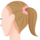 長期間、髪の一部を強く引っ張った髪型を続けることにより、その部分だけ抜け毛が目立つようになる脱毛症のことです。ポニーテールなど髪を強く引っ張って結ぶ髪型や、同じ分け目を長期的に続けることで発症しやすくなりますが、たまに髪型を変える事で防ぐことができます。