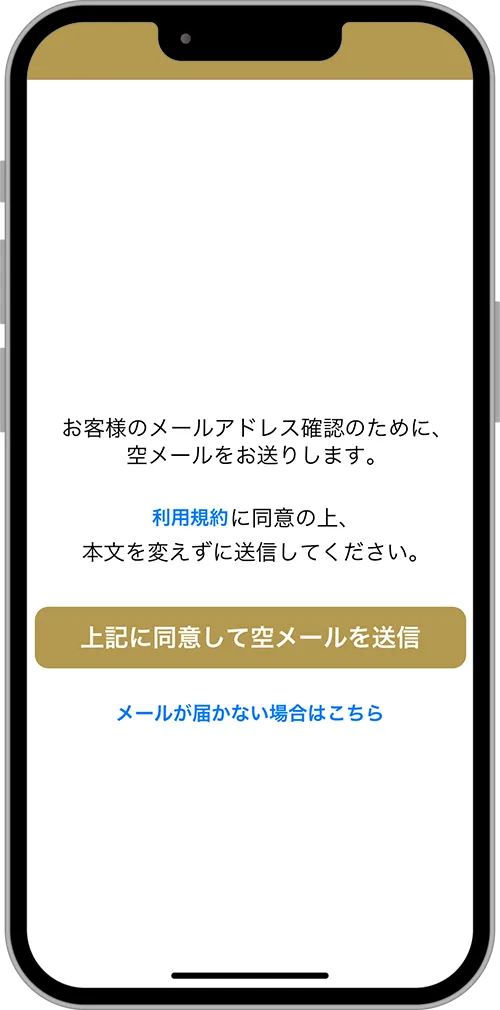 メーラーが起動しない場合はメールアプリから直接宛先を入力して空メールを送信してください。