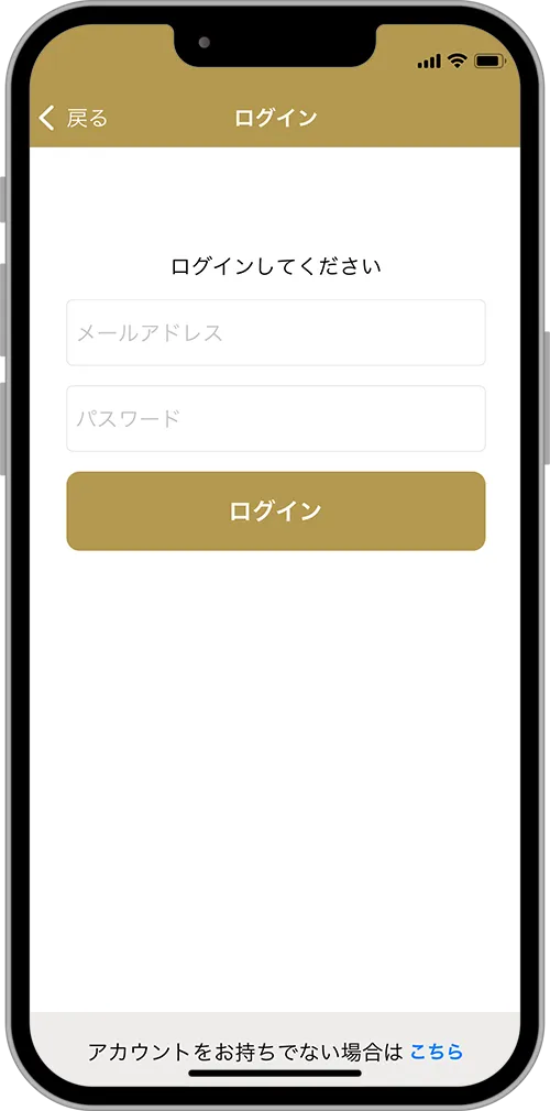 メールに記載されている「メールアドレス」「パスワード」を入力し、ログインボタンを選択します。