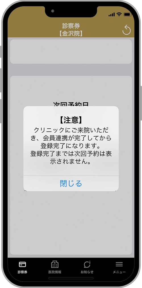クリニックにご来院いただき、会員連携の手続き後、登録が完了となります。