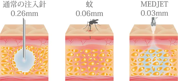MEDJETは蚊の針の約半分(30ミクロン)の水流で浸透注入します。